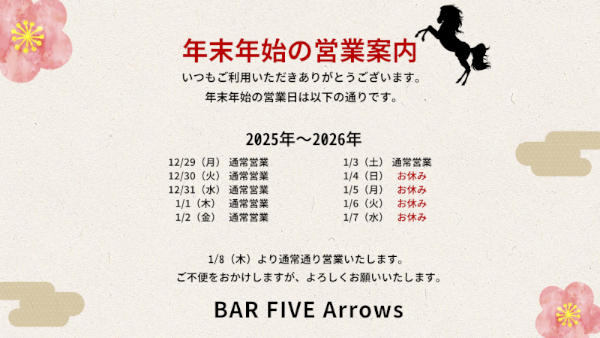 年末年始の営業スケジュールのお知らせです!